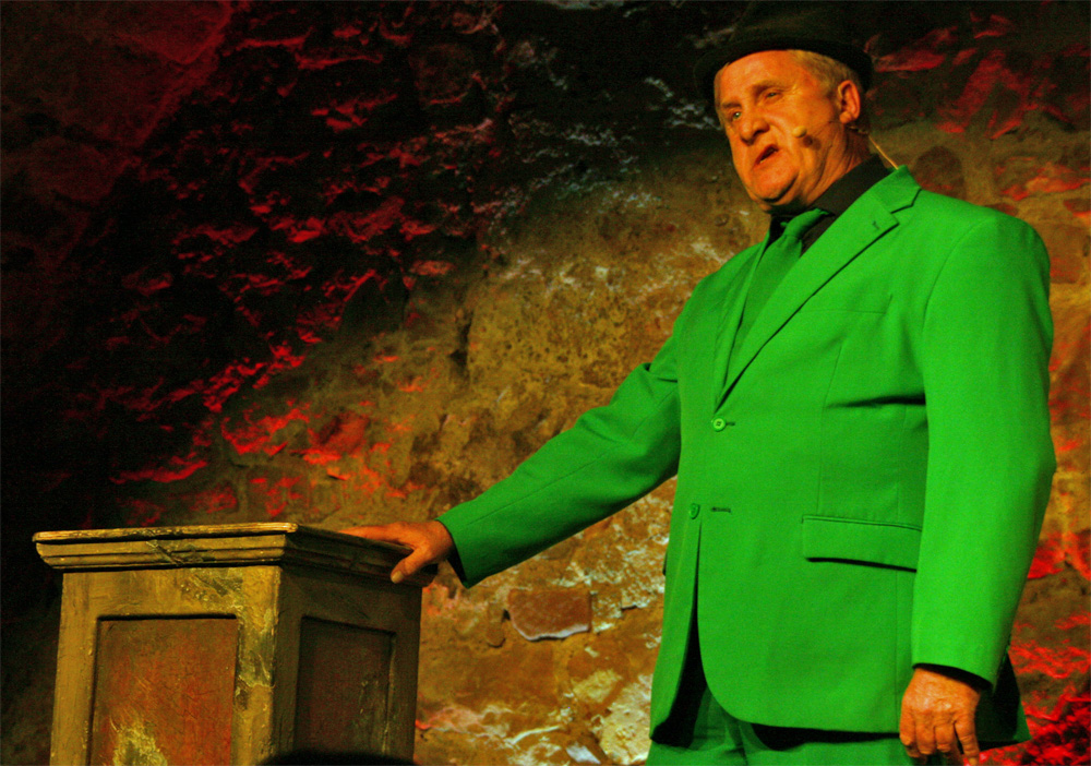 Es gibt soviel Dinge, über die sich der Mann aus Bempflingen aufregen kann, so viele, dass man dabei leicht den Überblick verliert. Brötchenpreise, Verschwendungs-sucht, Amts- und Gsälzschimmel sowie Nachbarschaftsstreit. Dabei lässt er sich die Themen auch gerne von seinem Publikum diktieren. Selten war sich Ärgern so lustig, wie bei „Hämmerle eskaliert!! Vor allem wenn er es für sie tut. Und was meint er zu den Aktivitäten der Letzten Generation? „Wegen dem Kunstwerk isch es mir egal: Aber So goht mer nicht mit dem Essen um„ Bernd Kohlhepp ist ein Multi-Talent. Er spielt, singt und tanzt. Er schwadroniert mit dem Publikum, moderiert, marodiert und balanciert dabei mit dem Publikum und greift sich im Stehen seine vielfältigen Themen aus der Luft.