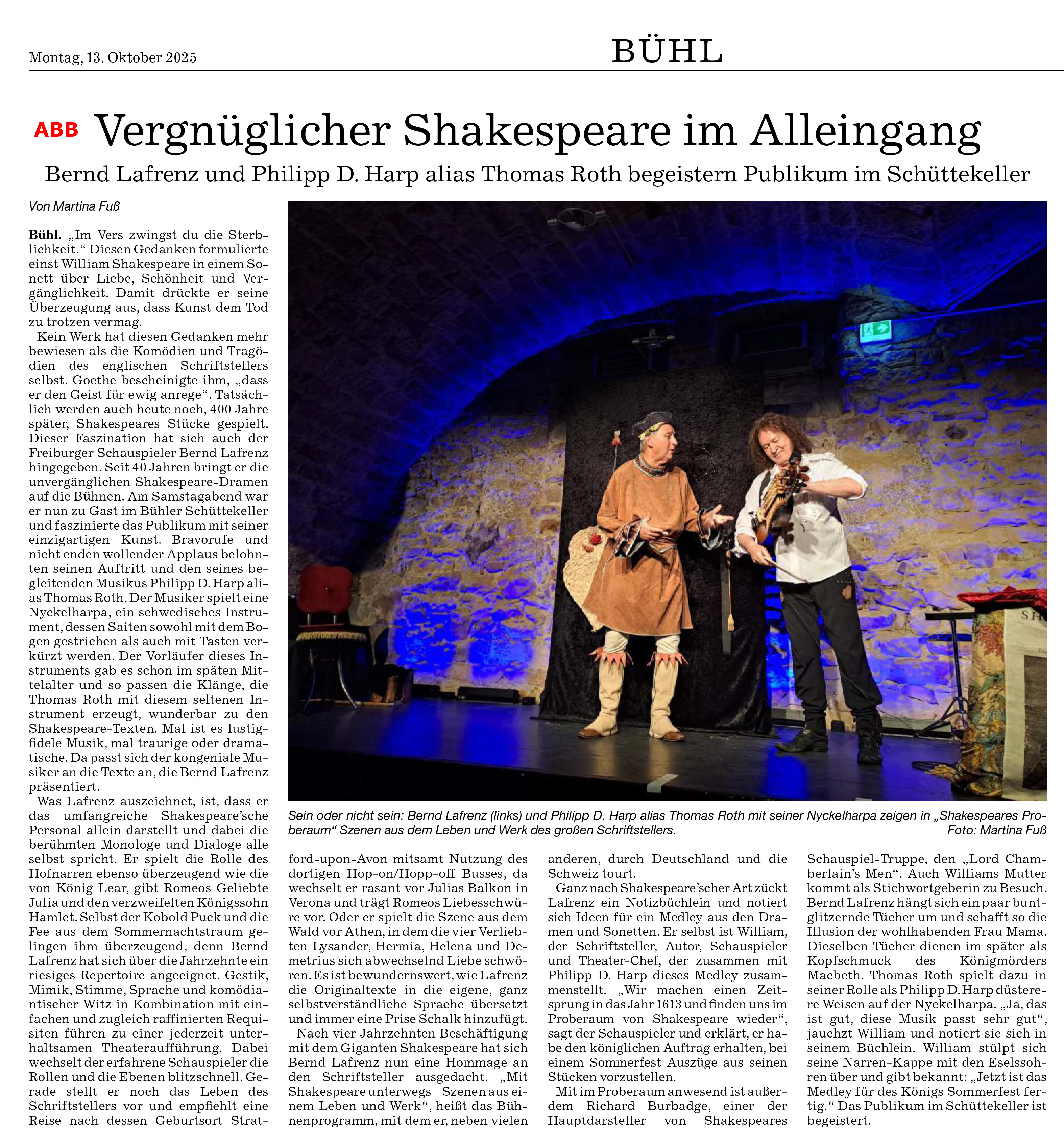 Bernd Lafrenz "Mit Shakesbear unterwegs" - "Special Guest: Thomas Roth an der Nyckelharpa"