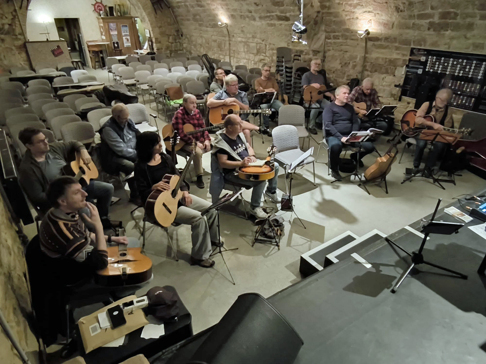 Die treuen Wiederholungstäter wissen es schon: Kein Gitarren- Workshop bei Peter Autschbach gleicht dem anderen, denn Peter geht auch bei diesem Kurzworkshop auf ganz individuelle Weise auf jeden einzelnen Teilnehmer ein.